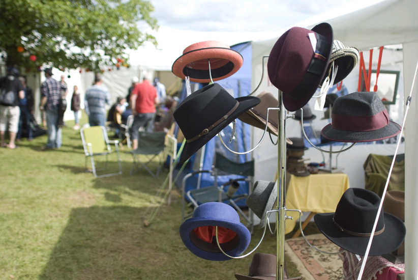 Last weekend we took our new Gentleman’s Hats venture to Didmarton Bluegrass Festival on Kemble Airfield in Gloucestershire… This is because Jules Bushell, champion of ‘The Gentleman’s Area’, is also a musician who plays double bass (mandolin, saw, phonofiddle etc….)with several bands.
